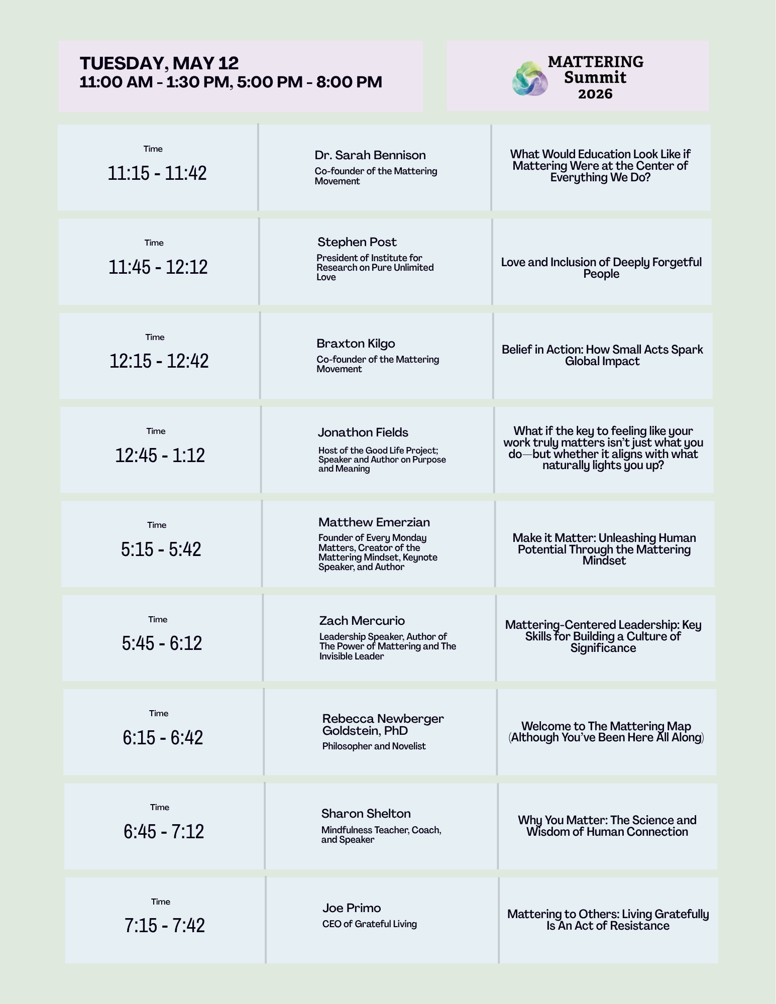 There is no financial exchange. Instead, the Summit is fueled by a shared commitment to advancing the message of mattering. This first‑of‑its‑kind event is driven by our collective passion for human connection and significance, elevating leading voices in the field while expanding awareness, sparking collaboration, and amplifying impact around the world.