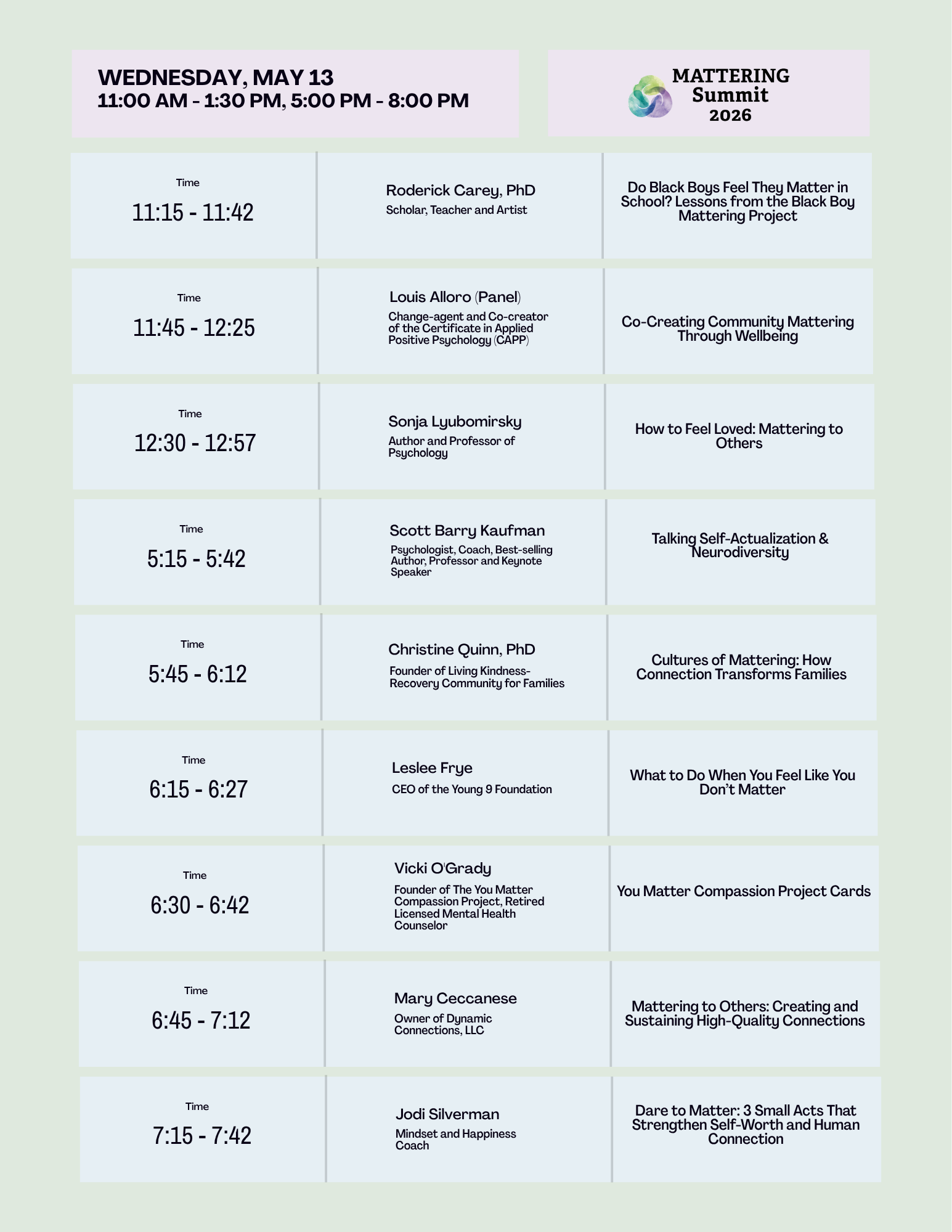 The Mattering Summit is a speaker forum offering three interconnected dimensions of mattering: self, others, and the global society.