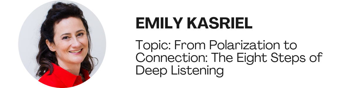 An award-winning former BBC journalist and editor, Emily Kasriel is the author of Deep Listening and a Senior Visiting Fellow at King’s College London. Her evidence-based, eight-step approach to listening fosters genuine understanding and psychological safety, even across profound social and political divisions. A visiting scholar at Columbia University and an upcoming TED speaker, she collaborates with global leaders and communities to transform polarization into meaningful connection.