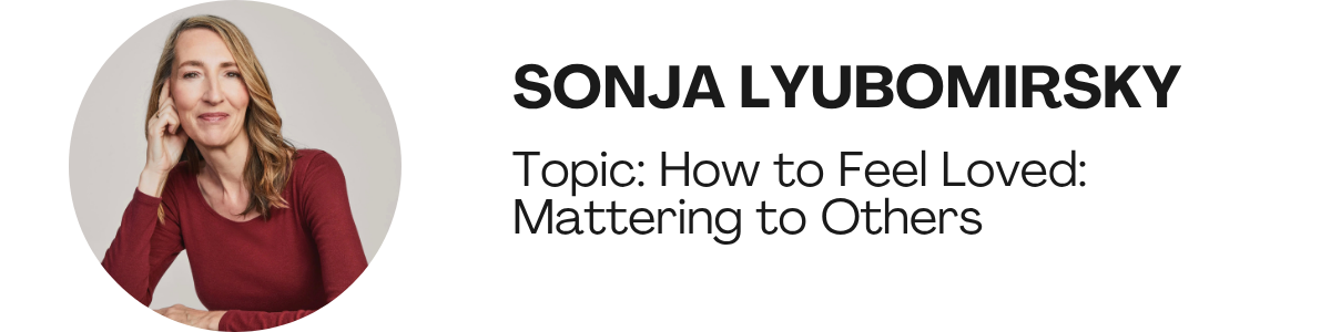 Distinguished Professor of Psychology at the University of California, Riverside, and author of the best-sellers The How of Happiness and The Myths of Happiness, Sonja Lyubomirsky is a leading expert on the science of lasting well-being. A Harvard and Stanford alumna, her pioneering research explores how gratitude, kindness, and connection can increase happiness—topics she recently shared on the TED mainstage and in her latest book, How to Feel Loved. She is a Fellow of the AAAS and a recipient of numerous honors, including an Honorary Doctorate from the University of Basel.